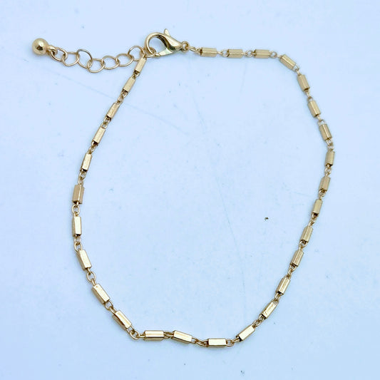 Gold Plated Ankle Bracelet Rectangular Bead Chain Gold Anklet