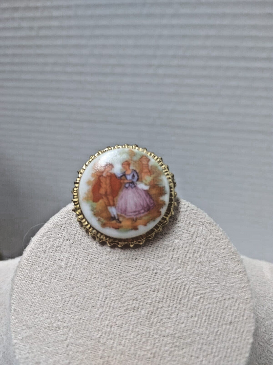 Antique Beautiful Brooch Pin Porcelain Limoges Scene Amatory