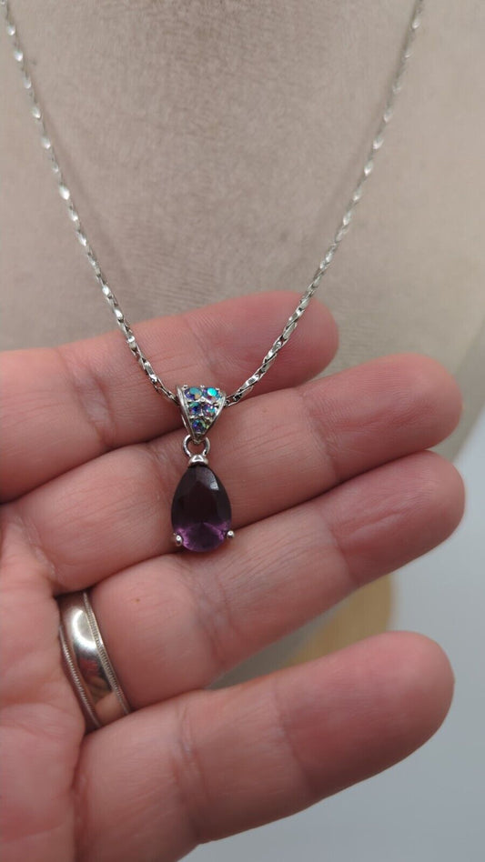 Avon NR Amethyst AB Rhinestone Pendent Necklace Silver Tone 2006