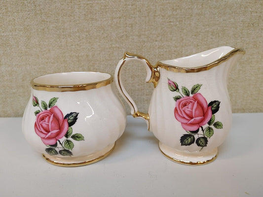 1970's Cream & Sugar Set, Sweet Rose Cream and Sugar With Gold Trim, Tea Time