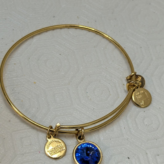 Alex and Ani Gold September Blue Zircon Birthstone Charm Bangle Bracelet 7.5"