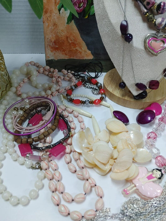Vintage To Now Mix Jewelry Lot Necklaces Bracelet Earrings Costume Purple Pink