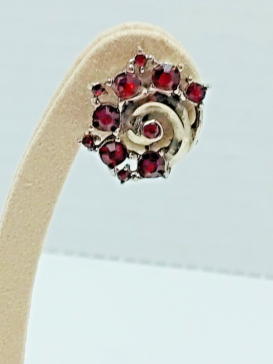 Vintage Silver Tone Royal Crest Screw Back Earrings with Red Rhinestones