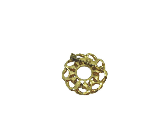 Vintage Rhinestone Brooch Pin Gold Color 1.5" Round