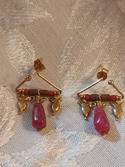 Vintage Victorian Inspired Handmade OX BLOOD RED CORAL Crystal Gold on Silver