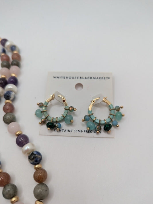 WHBM Mixed Gemstone Beaded Necklace Quartz Designer Silver Tone Doble Strand 34"