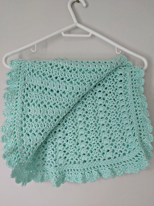 Beautiful Handmade Crochet BABY BLANKET Afghan soft Mint Green with Scalloped