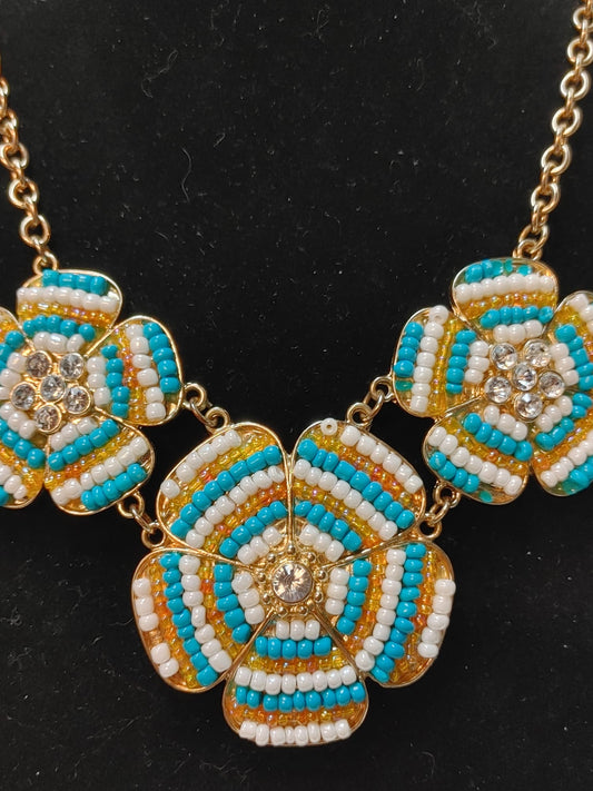 Boho Chic Beaded Flower Necklace Golden Chain Handmade Mandala Necklace Colorful