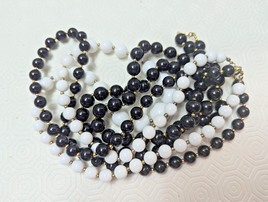 Lot of 3 VTG Black/White Gold Beads Lucite Beaded Necklace PAT Number in cladp