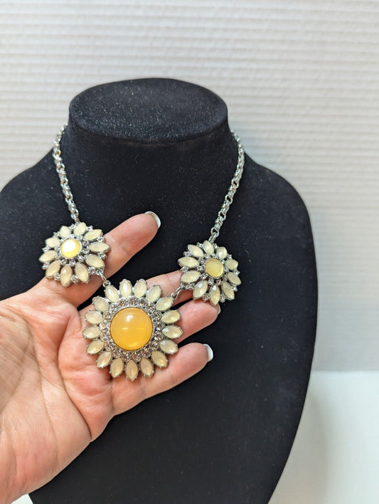 Lia Sophia Triple Flower Statement Necklace Yellow Sunflower 18-21" Silver Tone