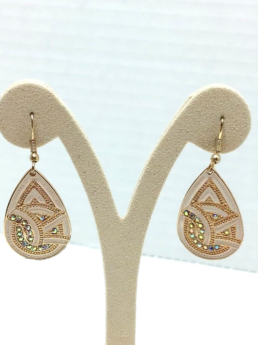 Mikey Rhinestones Gold Tone Paisley Earrings Formal Wear Bohemian Style