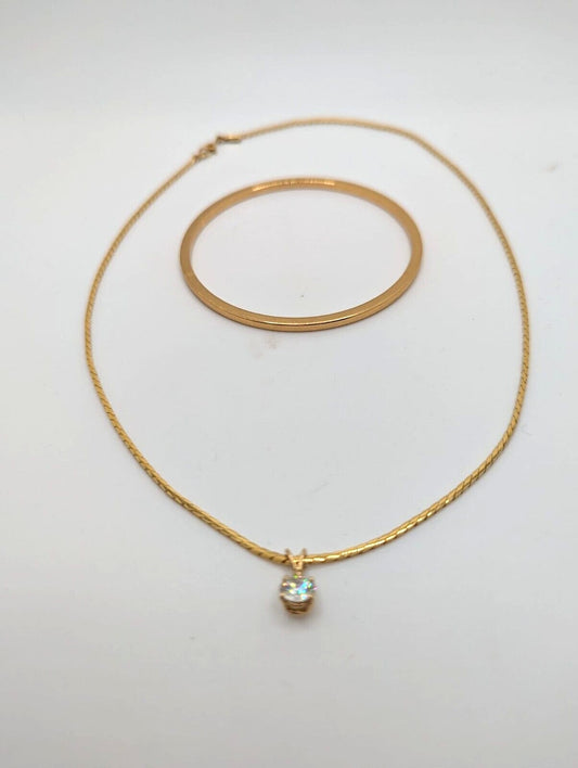 Monet Clear Crystal Rhinestone Pendant Chain Necklace Bracelet Set Gold Tone