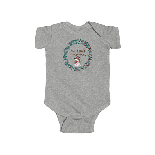My First Christmas Baby Bodysuit – Infant Holiday Onesie with Wreath & Reindeer