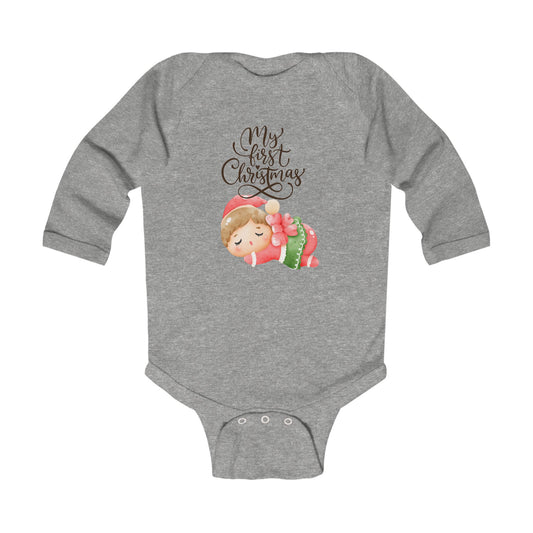 My First Christmas Infant Long Sleeve Bodysuit - Cute Sleeping Baby Holiday Onesie