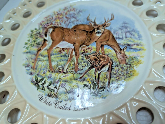 Set of 2 Porcelain Decorative Deers Plate Home Wall Decor Ceramic Collectible