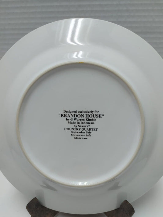 Sakura Brandon House Country Quartet Rooster BLUE Plate Warren Kimble Farm Decor