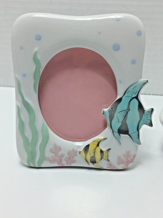 Porcelain Small Picture photo Frame & Basket 3D Fish Marine scene made in Japan