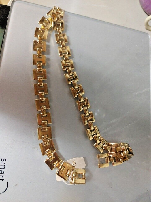 New Chunky choker Necklace Gold Tone Square H link 16" X 3/8" 1978 Vintage