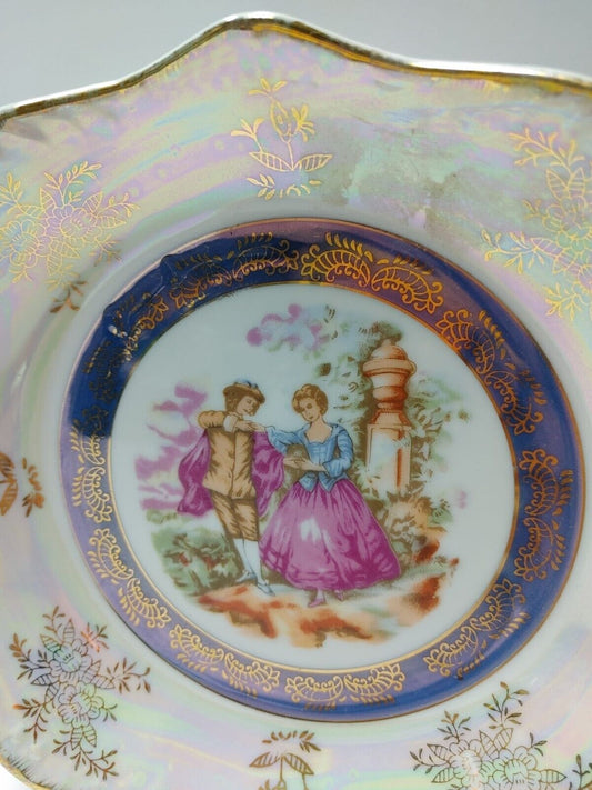 Pearlescent Square Bowl with Dancing Couple Iridescent Lustreware Dish Japan
