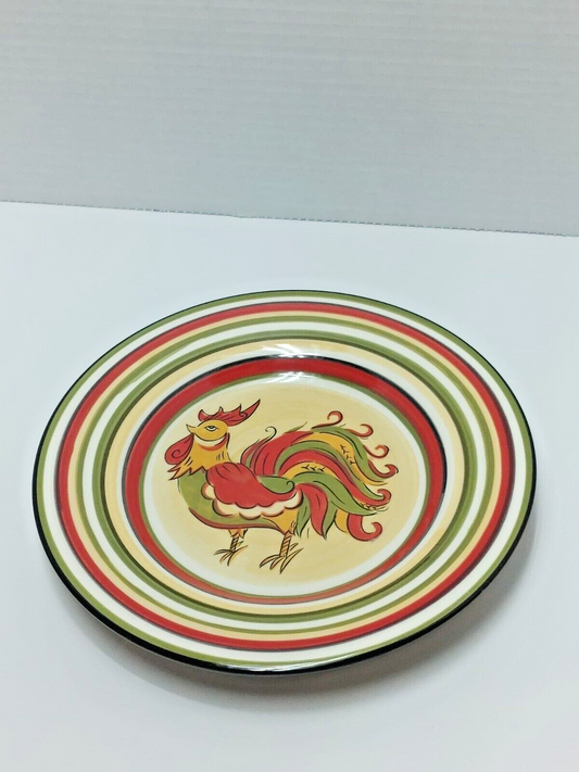 Salad Plates Red Green Yellow Trim Tabletops Gallery Rafael Rooster 8.5" FARM
