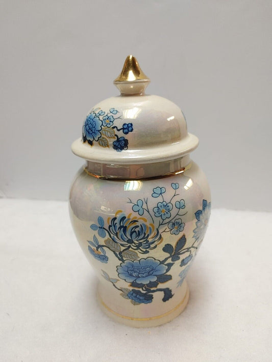 Sadler England Ginger Jar Luster Ware Urn Blue Floral Design Gold Trim Vintage
