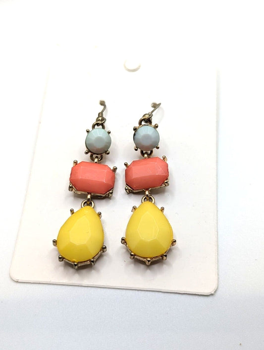 Pretty Art Deco Pastel Faceted Teardrop Drop Earrings Tricolor gold tone