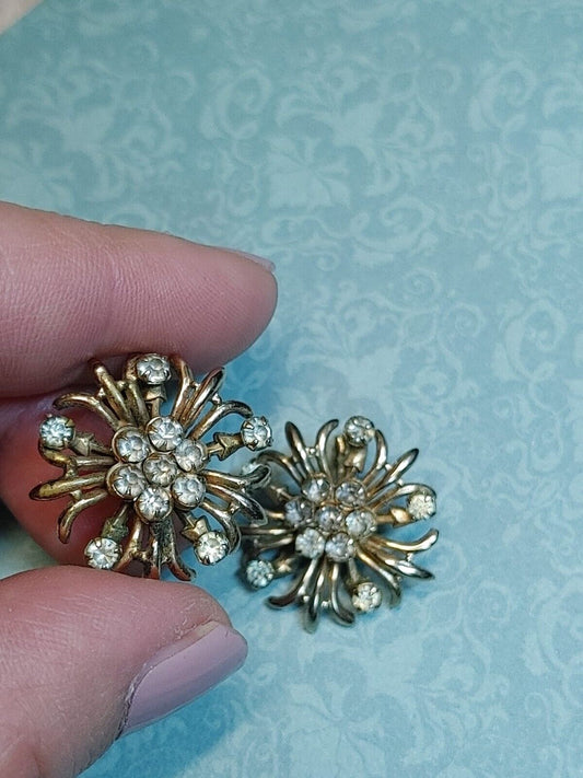 Vintage 1930-40s Signed PAT 1967965 Clip Earrings Rhinestones Goldtone