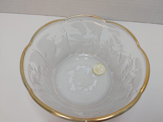 Vintage BOWL Crystal Clear Gold Trim Frosted Floral Bowl Made in Indonesia
