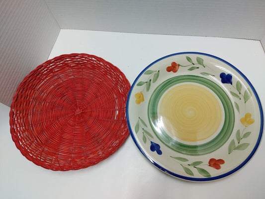 Tabletops Gallery TIA Hand Painted Stoneware 10.5" Bread/ Salad Plate Basket
