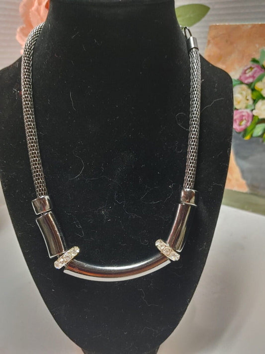 Thick Gun Metal Snake Chain Choker Collar Necklace White Rhinestones 16"