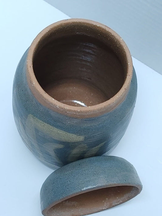 Vintage Artisan Clay Jar & Lid Handmade Blue gray studio ceramic lidded Pottery