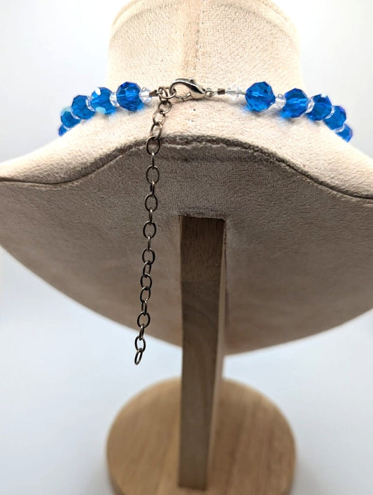 Vintage Blue AB Aurora Borealis Faceted Crystal Beaded Necklace Estate Find