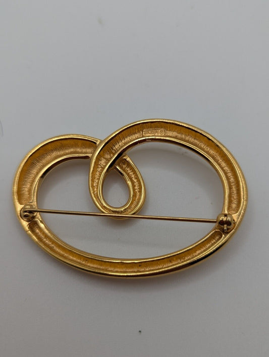 Vintage MONET Signed Pin Brooch Gold Tone Abstract Shape Swirl