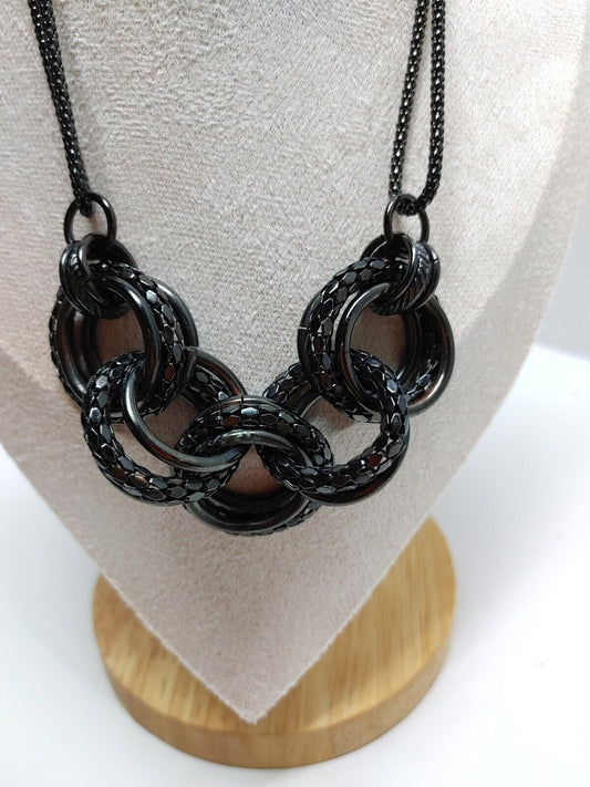 Vintage Jewelry Necklace Earrings Gun Metal Chain Chunky Rings 17" Jewelry Set