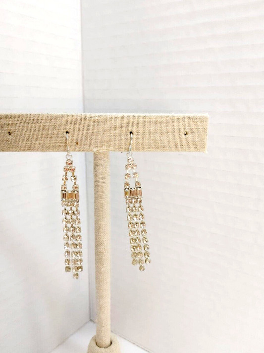 Vintage Estate Art Deco Drop Earrings Rhinestone Dangle Bridal silver Tone