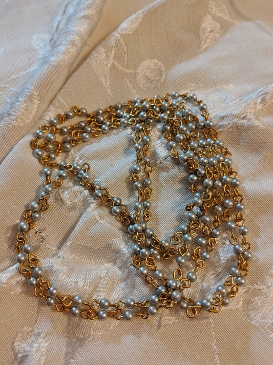 Vintage Grey Beaded Rosary Style Multi Strand Necklace Gold Tone 60"L Bohemian
