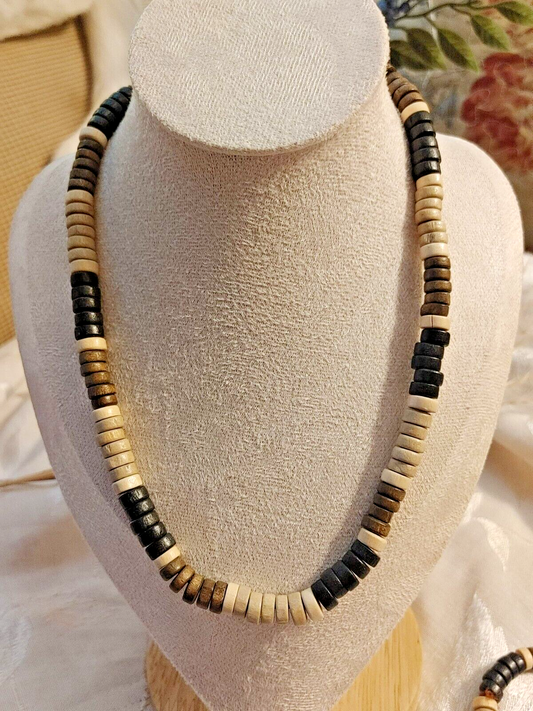 Vintage Hawaiian Coconut Wood Bead Necklace & Bracelet Authentic Hawaii Jewelry