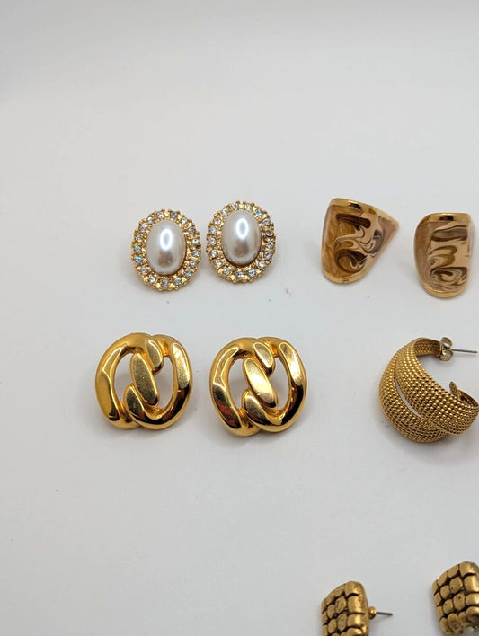 Vintage Earrings Stud Pierced Chunky Bold Statement Gold Tone Mix Lot of 7