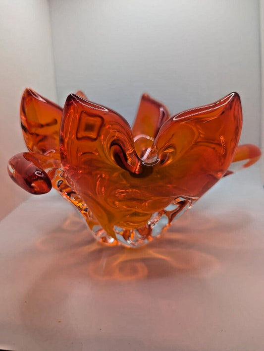 Vintage Murano glass Sunburst Flame Bowl Hand Blown Art orange Amberina