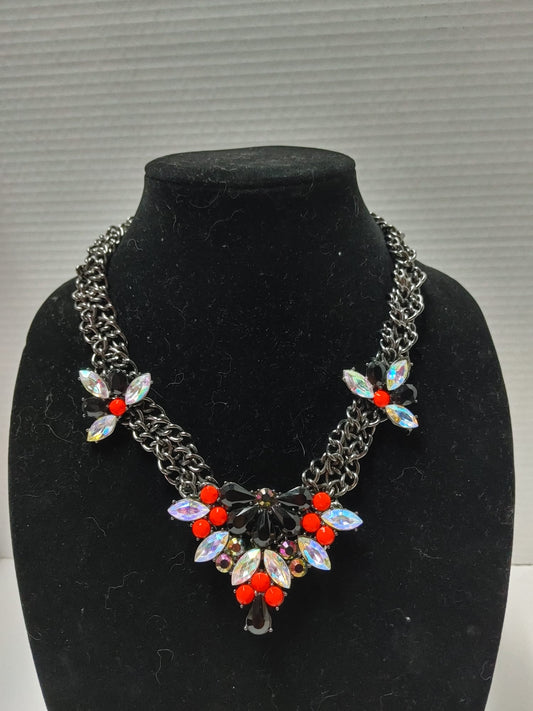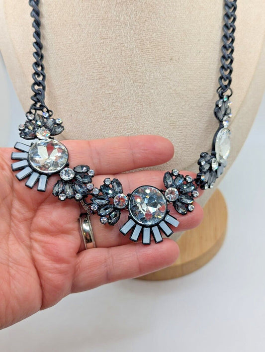 Bib Statement Rhinestone Sparkle Flower Statement Necklace Black Chain