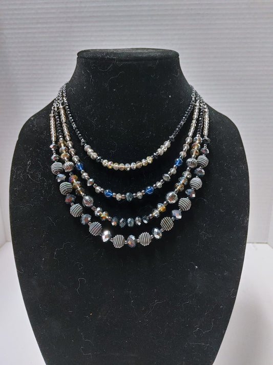 Avon NRO Signed Multi-Strand 17" Necklace & Earring Set Blue Black Beads Silver