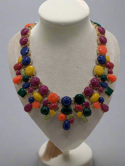 Talbots Bib necklace Multicolor Gold Tone & Cabochon Statement 21"