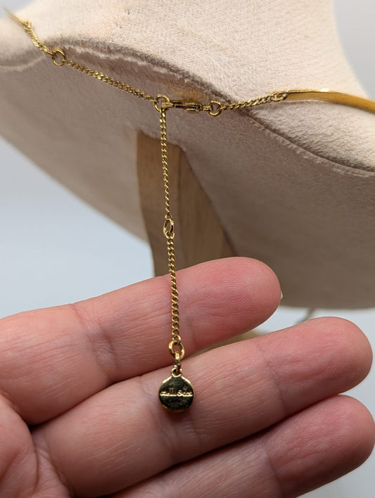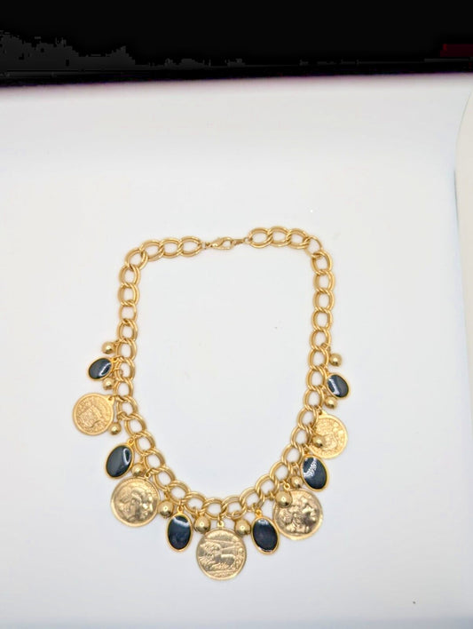 Coin Necklace Black Disc Charms Coin Dangles Charms Gold Tone Link Chain 24"