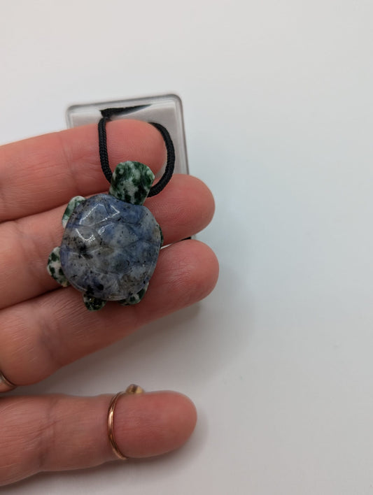 Blue Sodalite Green TURTLE tortoise GEM carving Pendant NECKLACE