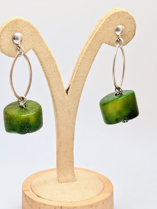 Multicolor Handmade Barrel Shaped Beads Silver Tone Necklace Earrings Set