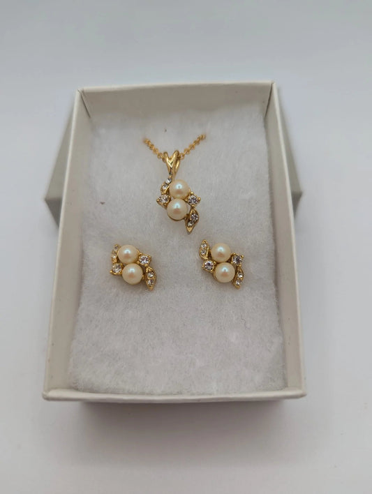 Vintage Gold Plated, Rhinestones and Faux Pearl Necklace & Earrings set