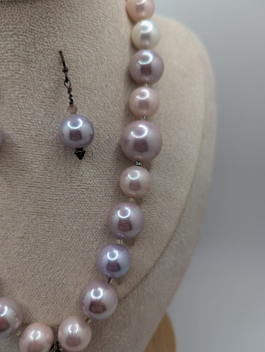 Murano Heart Pendant & Faux Pearl Jewelry Set Necklace & Earrings