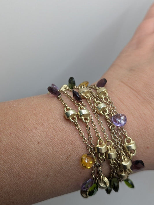 9 Strand Satin Gold Tone BRACELET With Multi Crystal MAGNETIC