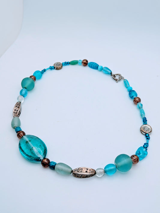 Esmor Glass Necklace Aquamarine Turquoise Tone Beaded 17-22" Vintage
