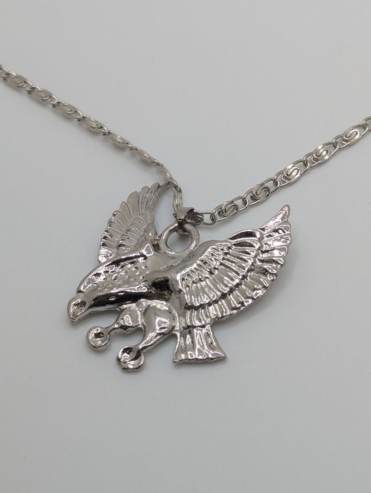 Silvertone Eagle Pendant Necklace Unisex 21” Chain